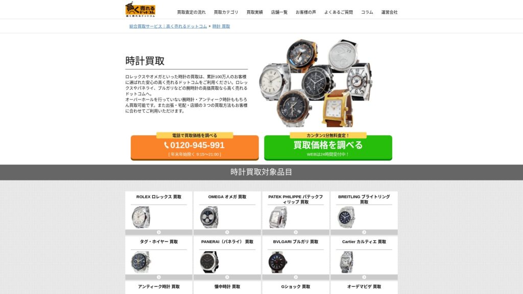 また、時計がない場合はブランド品などをまとめ売りすることで査定額が上がる可能性もあります。その業者が取り扱っている買取ジャンルを調べて、時計を含めて複数点を査定に出してみましょう。