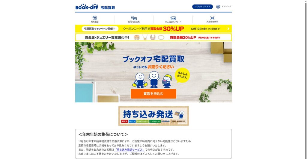 10月末まで送料無料と15%買取額アップのキャンペーンをやっていたので利用させていただきました。