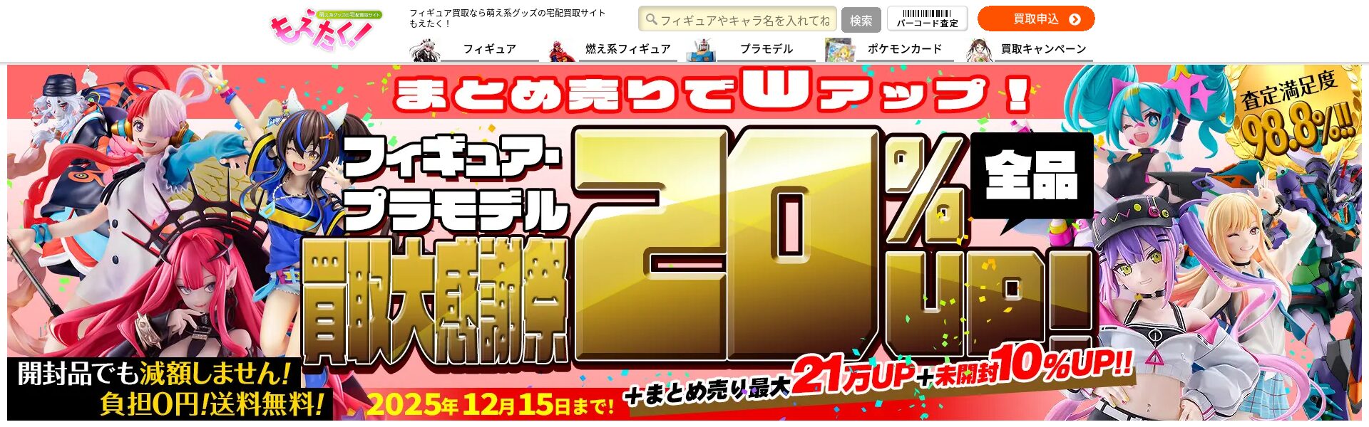 「もえたく!」は宅配買取に特化したフィギュア買取業者です。累計買取利用者数は300万人を突破、信頼と実績を積み重ねています。