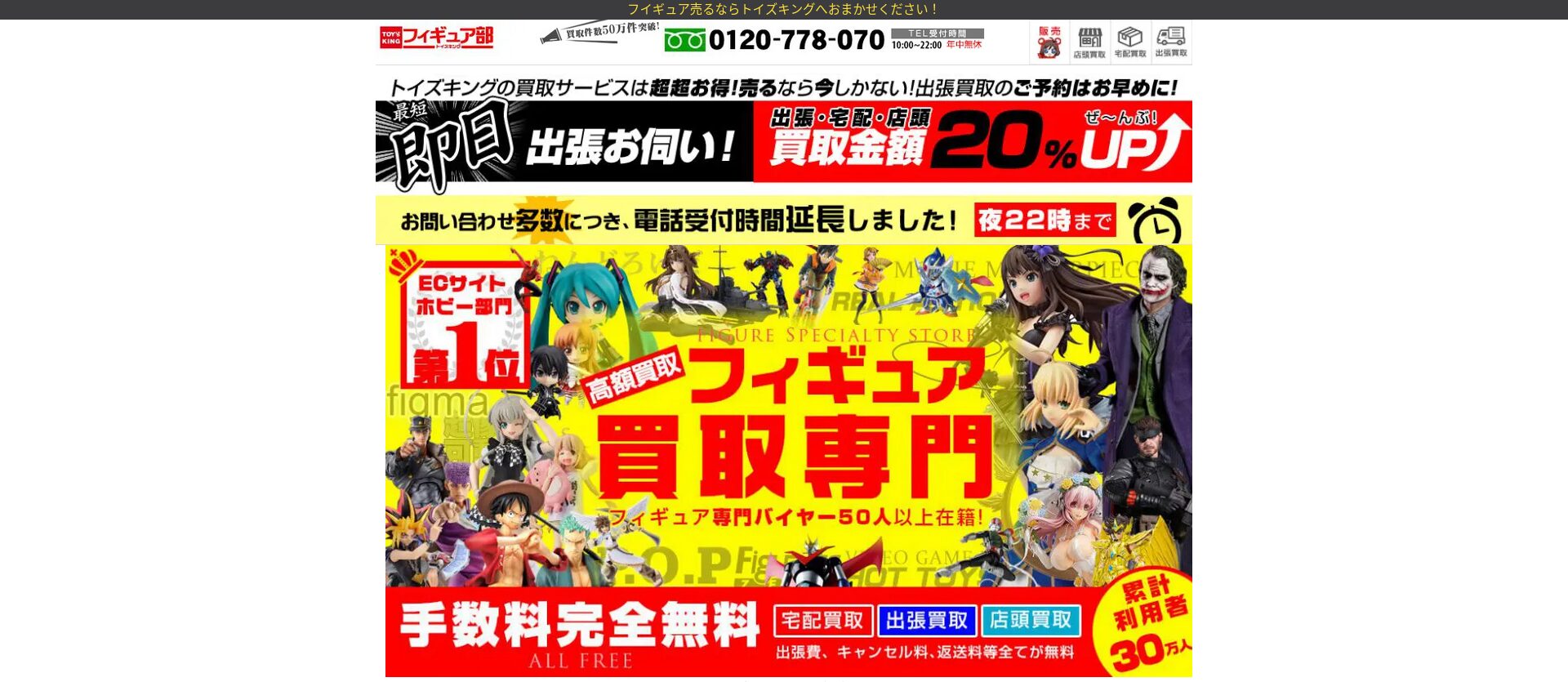 | ポイント | 宅配買取に特化したフィギュア専門店 | まとめ売りがお得なホビー買取専門店 | おもちゃ全般の買取が得意な買取専門店 |
