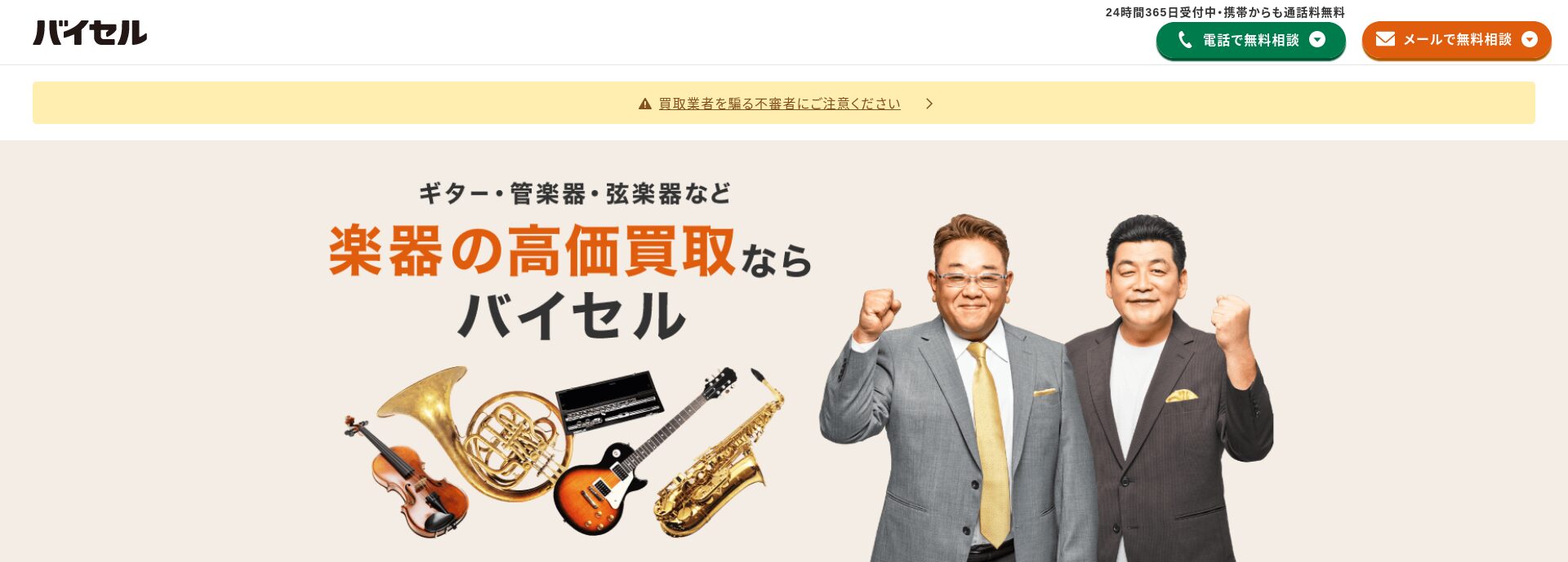 バイセルはギターを含む幅広いアイテムを取り扱う大手買取業者で、特に出張買取に強みがあります。出張買取はスピーディーで、最短で依頼日当日にスタッフが自宅まで訪問して査定。