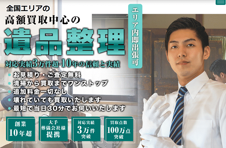 - メリット:遺品整理と同時に買取も行え、手間がかからない