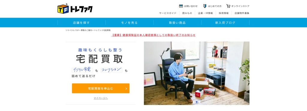 トレファク宅配買取は名前の通り宅配買取専門サービスです。専門サービスだけにシステムもしっかりしており、自宅から一切出ずに不用品を売れますよ。