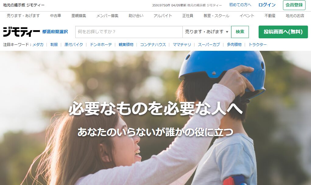「不用品がたくさんあるけど、処分に費用をかけたくない」、「不用品を売買したいけど、顔が見えない相手とやり取りするのは苦手」という方におすすめなのが、地域密着型の掲示板「ジモティー」です。