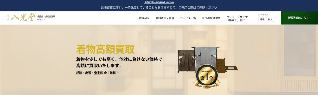 八光堂は創業より40年を超える着物買取の実績があり、運営会社は東証グロース上場のバリュエンスジャパン株式会社です。高額買取を可能にしているのは、豊富な販売経路を保有しているため。国内のみならず、海外にも販売ルートがあります。