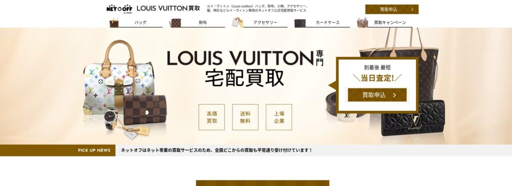 ネットオフは、大手グループが運営するブランド買取店です。ルイヴィトンも積極的に買い取っており、到着後最短での査定も可能。宅配買取は時間がかかるのが嫌いという方にも使いやすく、迅速にルイヴィトンを買い取ってもらえます。