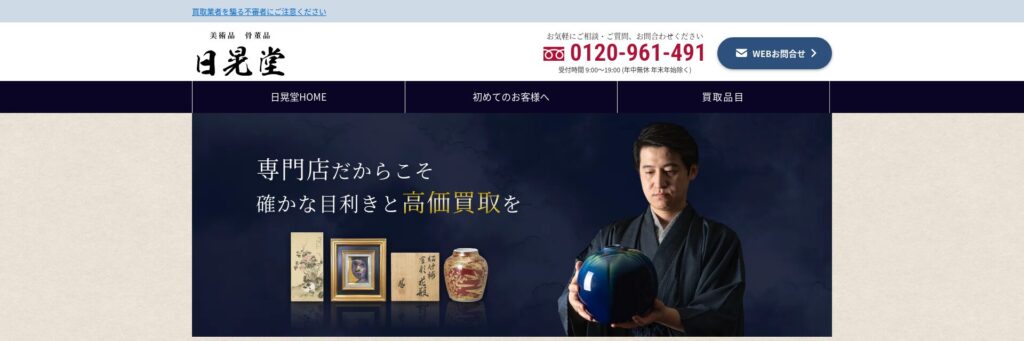 日晃堂は店舗買取だけでなく、宅配や出張買取にも対応。いずれの方法でも、社内の独自研修を受けた専門性の高い査定士が鑑定してくれます。