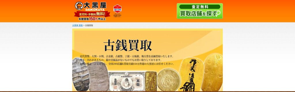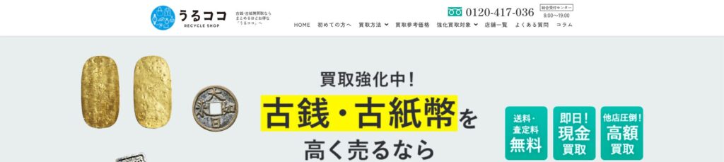 | ポイント | 古銭や硬貨など 様々なコインを売れる | 上場企業が運営しており安心 | 多様な品目をまとめて買取できる |
