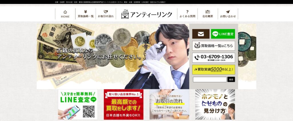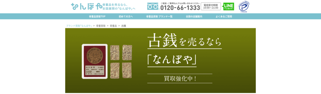 | おすすめポイント ・骨董品や美術品の専門買取業者なので鑑定眼が確か ・日本だけでなく中国などの古銭も買取対応 ・古銭一点からでも査定を依頼できる |
