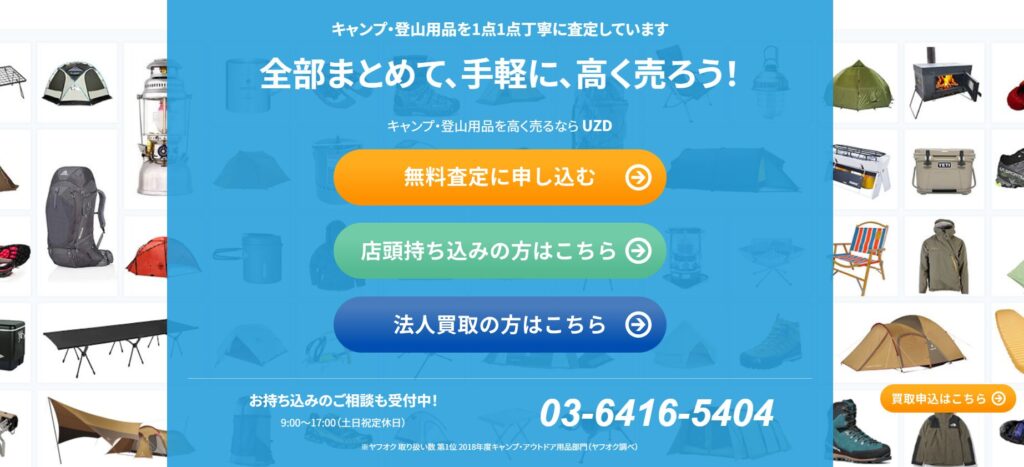 出張買取を希望する方や、大型のアウトドア用品を売りたい方は相談してみましょう。