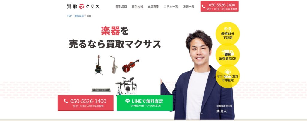 買取マクサスは幅広いジャンルの楽器を買取しているピアノ買取業者です。電子ピアノやキーボードなどから、エレキギター、シンセサイザーまで幅広く対応。東京都内であれば最短15分で出張が可能など、スピーディな対応にも定評がある業者です。大掃除や遺品整理などで不要なピアノを見つけた方は、スピード買取が可能な買取マクサスへ依頼してみましょう。
