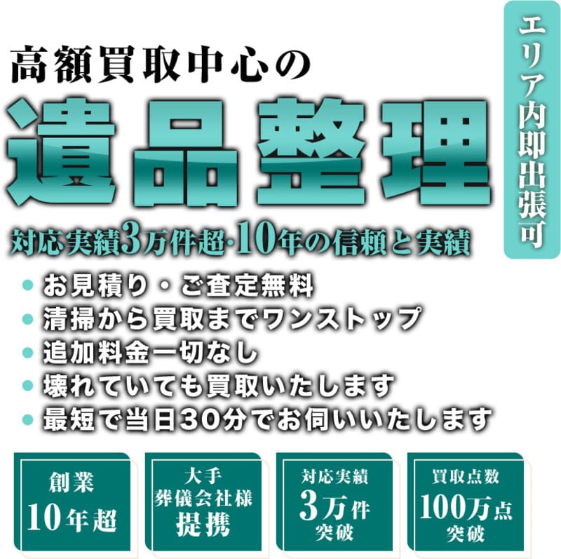 遺品の仕分けや不用品処分はもちろん、買取・供養・ハウスクリーニングなど、生前整理・遺品整理に関するあらゆるサービスをワンストップで提供します。