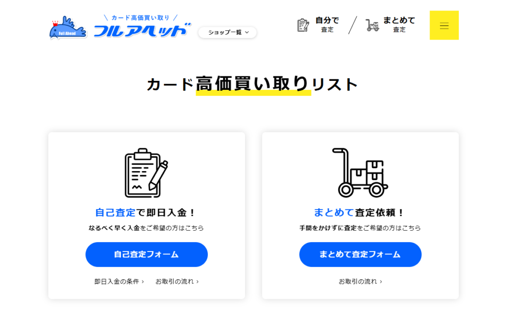 カードの査定から買取までが非常に早いため、急いでいる人にもぴったり。トレーディングカードに特化しているため、希少価値や市場動向を熟知したプロが査定を行う点もポイント高め。