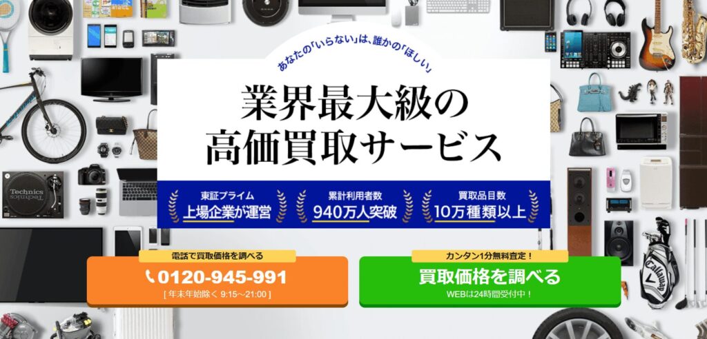 | おすすめポイント ・累計買取利用者数350万人以上の豊富な実績 ・無料宅配キットあり ・Webで24時間受付可能 |