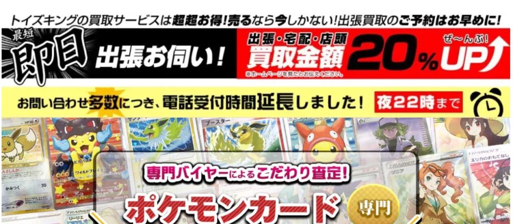 「トレカ愛情買取」という独自の買取UPシステムがあり、ポケカの思い出や愛情を記入するだけで、査定金額のUPが期待できます。