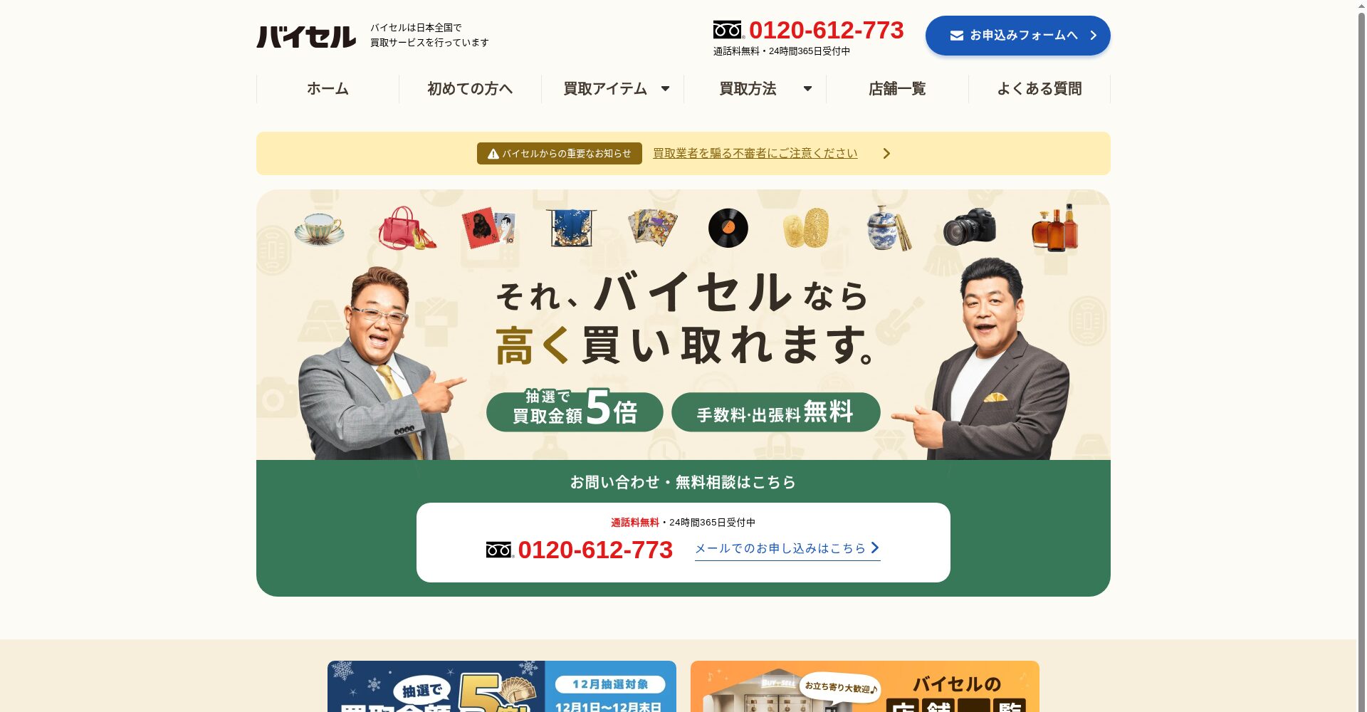 バイセルは、全国に店舗展開している買取業者の大手です。