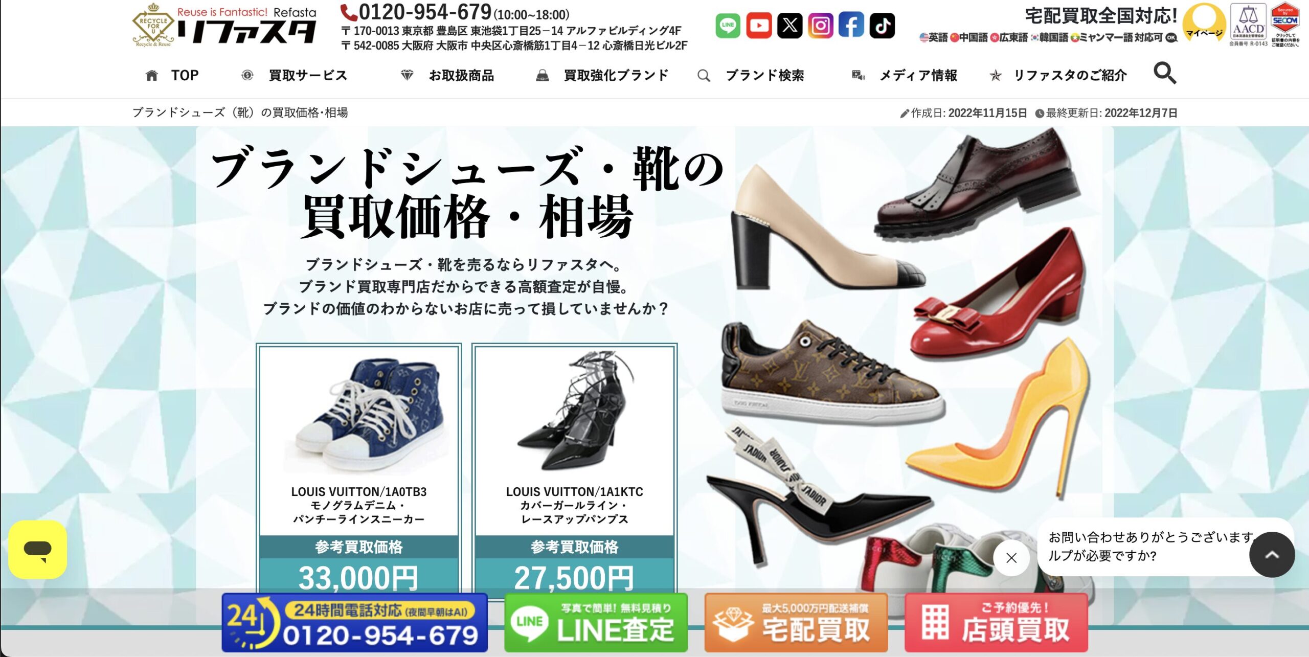 | 主要取扱ブランド | ルイヴィトン・シャネル・フェラガモ・ジミーチュウ・クリスチャンルブタンなど |