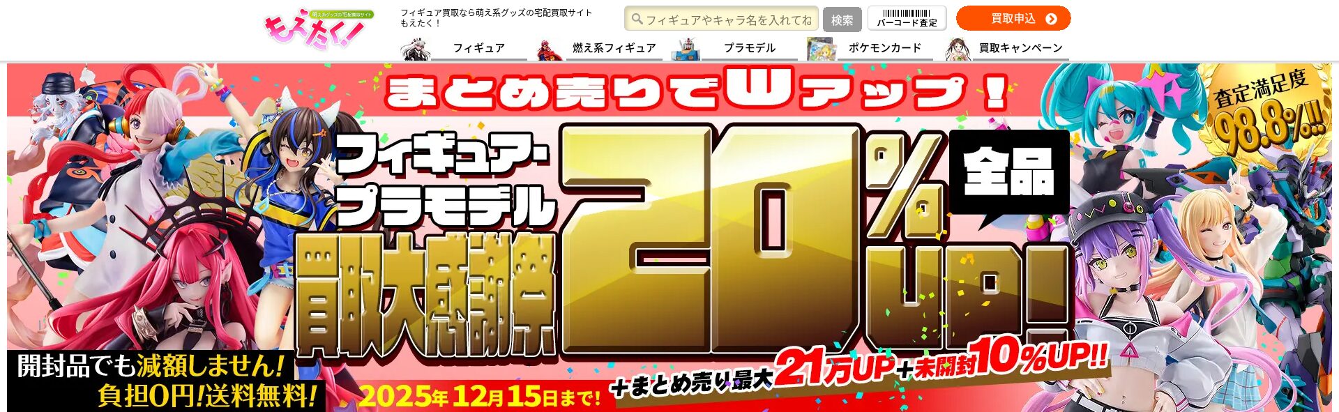 もえたくはネットオフのフィギュアプラモなどの買取部門で、宅配買取に特化したホビー買取業者で、フィギュアやぬいぐるみの買取に強みを持っています。