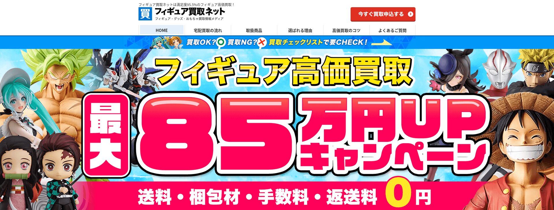 | おすすめポイント ・プロの査定士が在籍している ・アニメキャラ、限定品の買取を強化している ・出張買取に対応している |