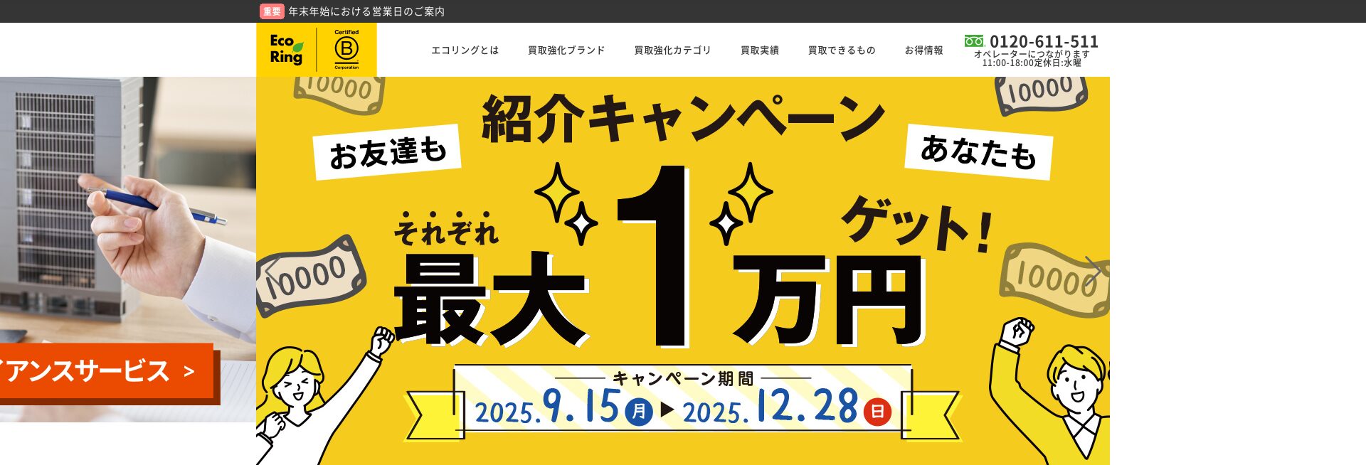 初めて買取する方は。買取額1,000円以上で2,000円アップ、買取額が10,000円以上の方はさらに3,000円アップのキャンペーンも実施中。