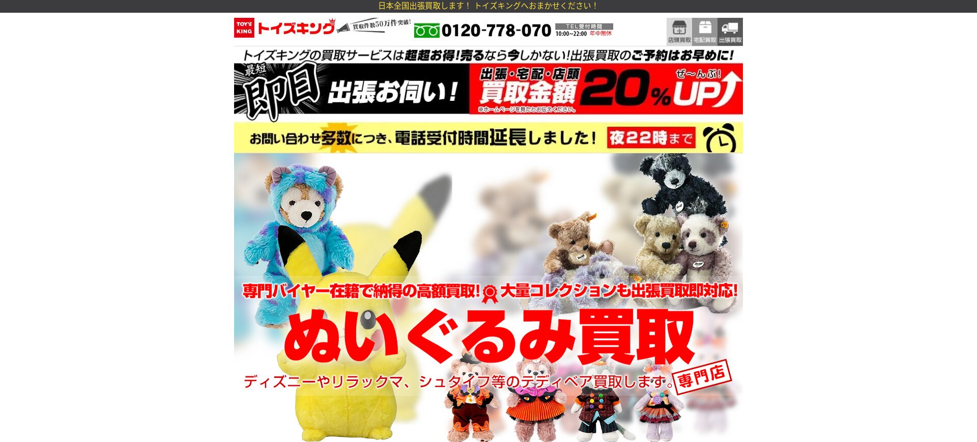 宅配買取や出張買取を提供しており、特に忙しい方や大量のぬいぐるみを売りたい方に適しています。