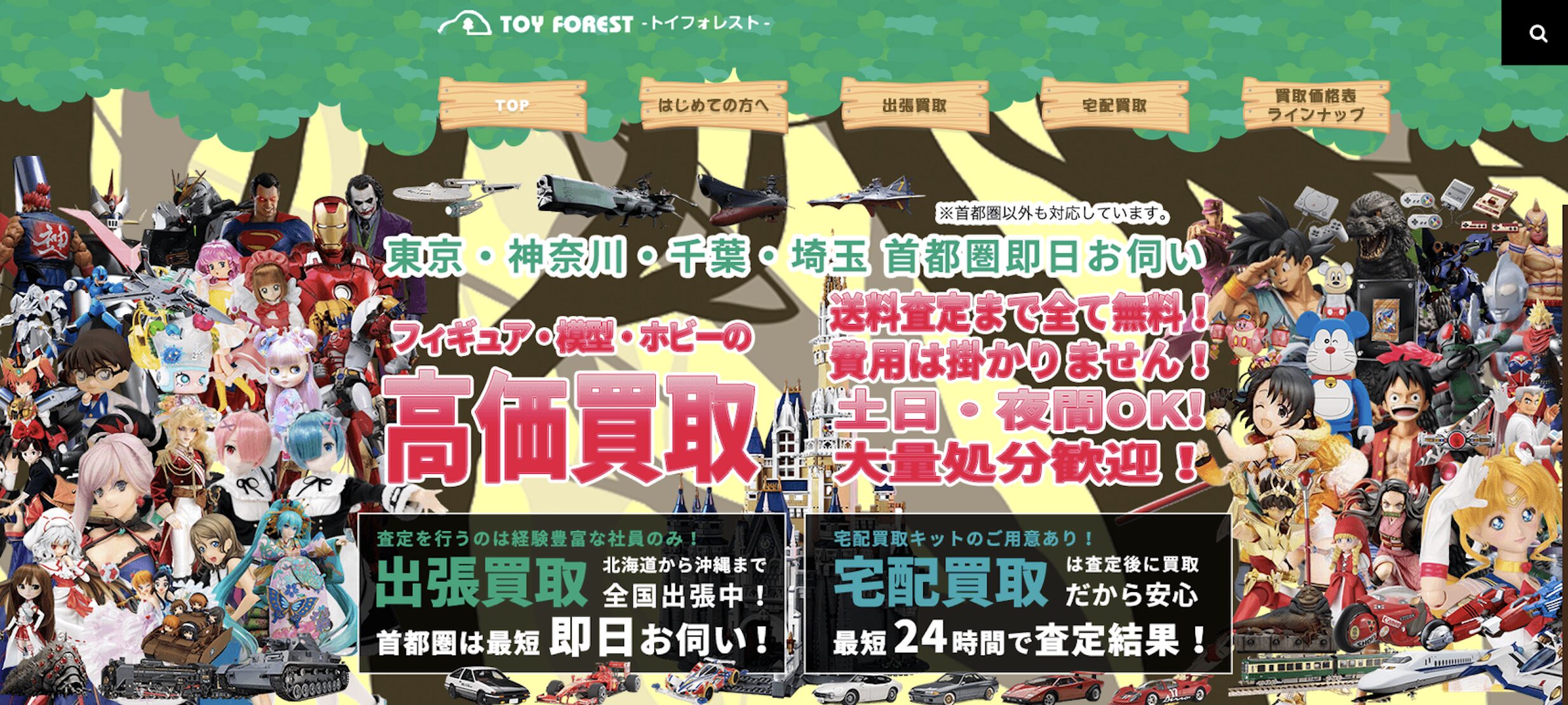 トイフォレストは、フィギュアやぬいぐるみ、ホビーグッズ全般の買取を行っている専門業者で、24時間対応の買取サービスが特徴です。