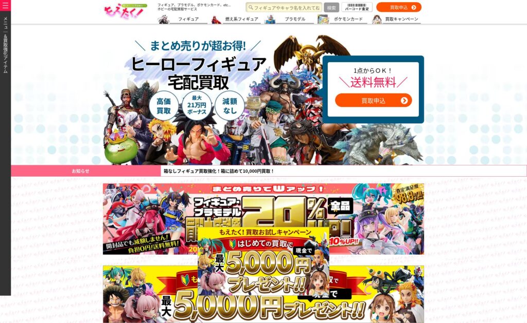 もえたくは、トレカやフィギュア、アニメ関連グッズなどの買取に特化した宅配買取業者です。