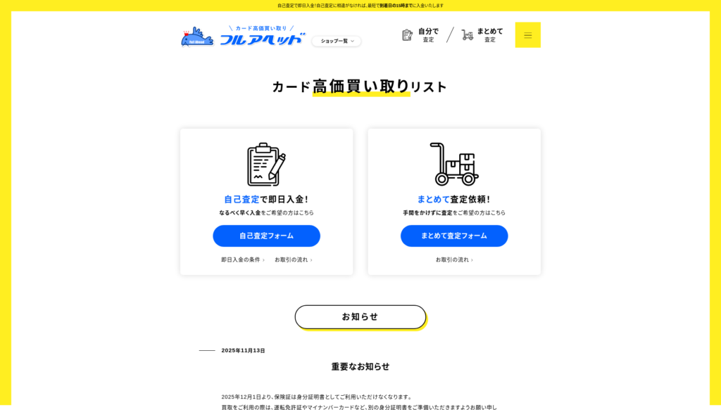 | おすすめポイント ・状態が悪いカードもまとめて査定できる ・大量のカードも買取できる ・入金スピードがはやい |