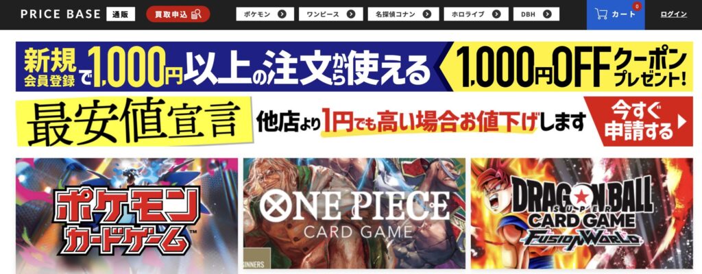 PRICE BASEは、トレーディングカードの販売と買取を行う業者です。取り扱いジャンルは多岐にわたるため、他では見つからなかったカードが見つかることも。