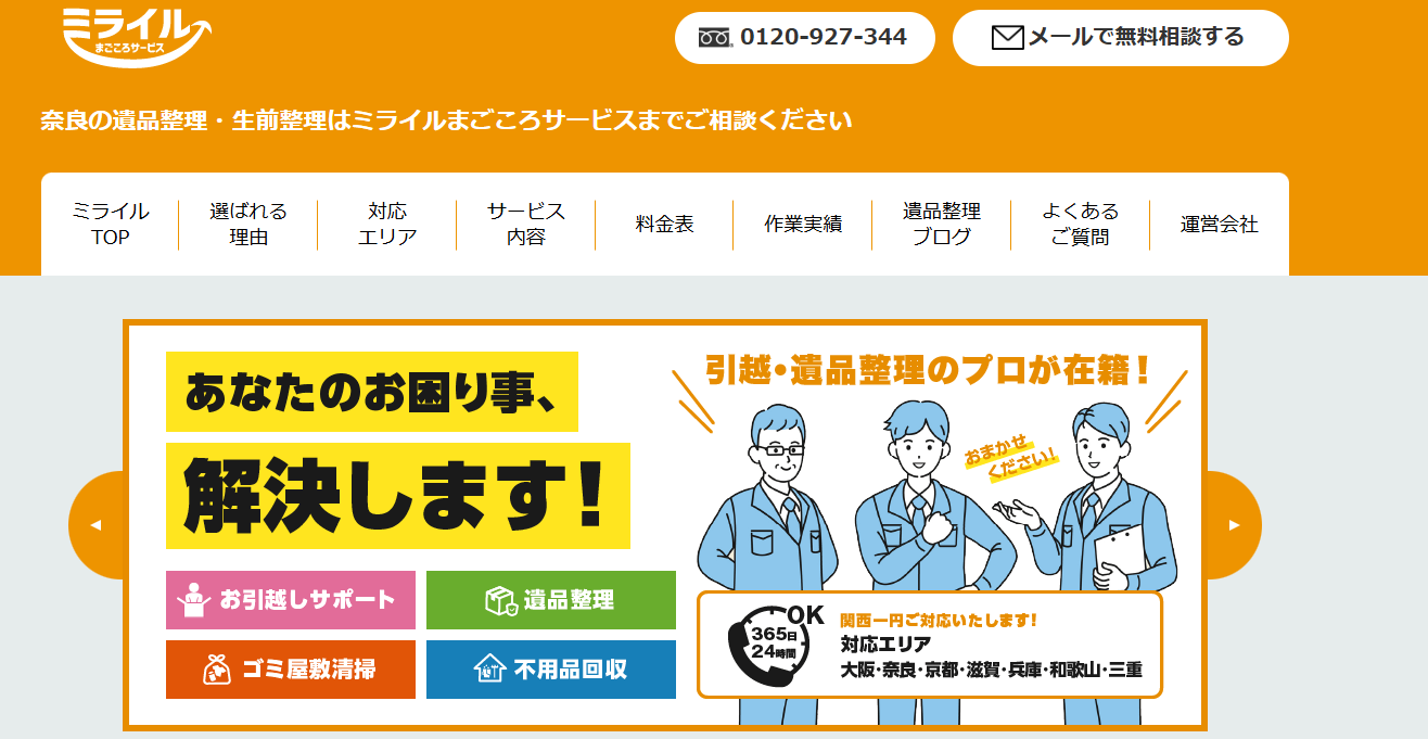 「しあわせの遺品整理」は奈良県を中心に全国対応で遺品整理・生前整理サービスを行っている業者です。