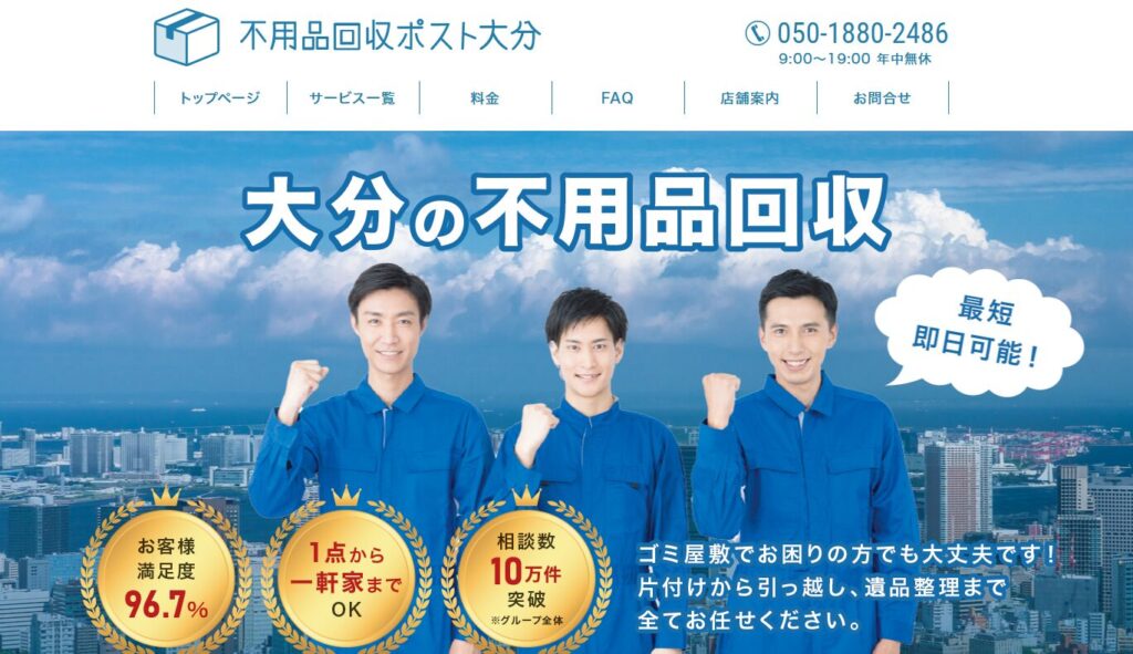 | 3位:不用品回収ポスト大分 | ![]() | 大分県内どこでも出張対応可能 |