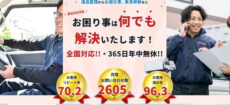 依頼者の心情に寄り添ったサービスを信条としており、遺品整理士の資格所持者を中心としたスタッフ陣が丁寧に作業を進めてくれます。