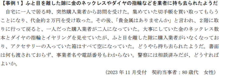 実際に報告されている被害事例を取り上げ、どのようなトラブルが起こるか具体的に見ていきましょう。