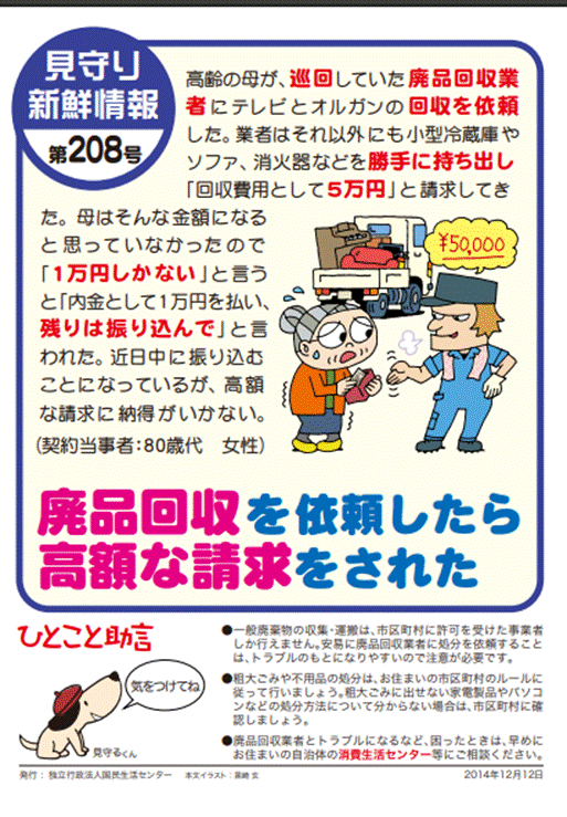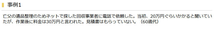 また消費生活者センターでは不用品回収を依頼した際、作業後に高額な料金を請求された事例を公表しています。