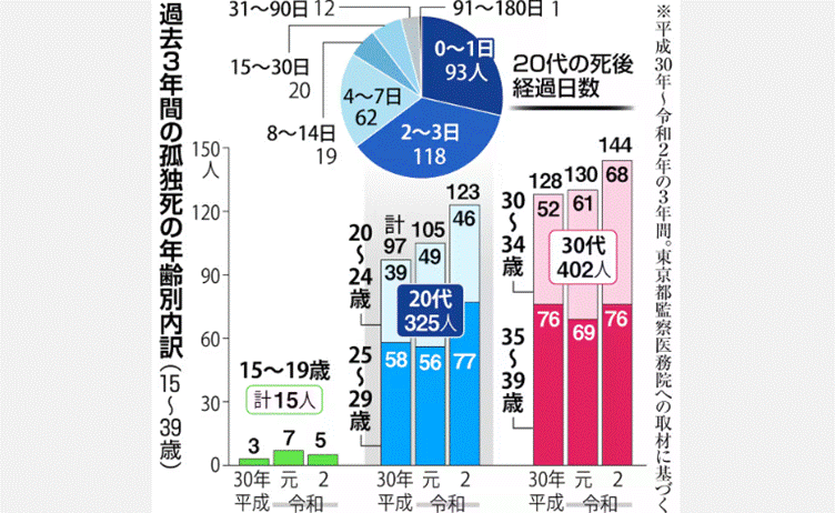 特に大学生や社会人になったばかりの人は、環境の変化に適応できずセルフネグレクト状態に陥り、場合によっては孤独死に繋がるケースも見られます。