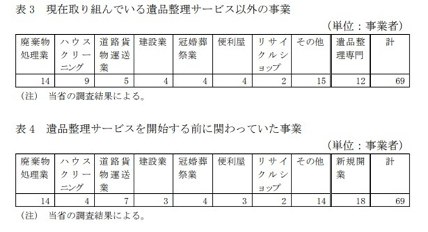 遺品整理業者の多くは、もともと不用品回収業者や関連業種からこの分野に参入しています。総務省が令和2年に実施した調査によれば、遺品整理業者69社のうち、遺品整理専門で開業したのは18社に過ぎません。