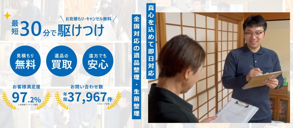 年間37967件の相談実績をもつ「しあわせの遺品整理」が、適切な解決方法を提案いたします。
