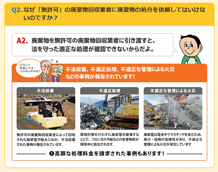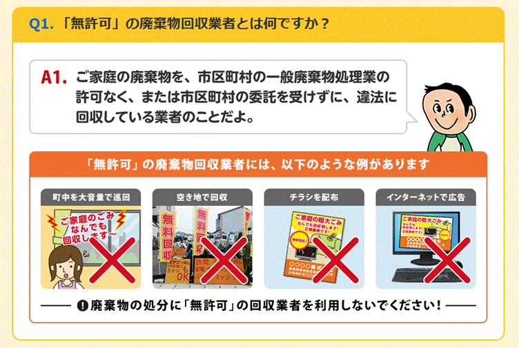環境省をはじめ全国の市区町村では、無許可の業者に回収を依頼しないように呼びかけています。