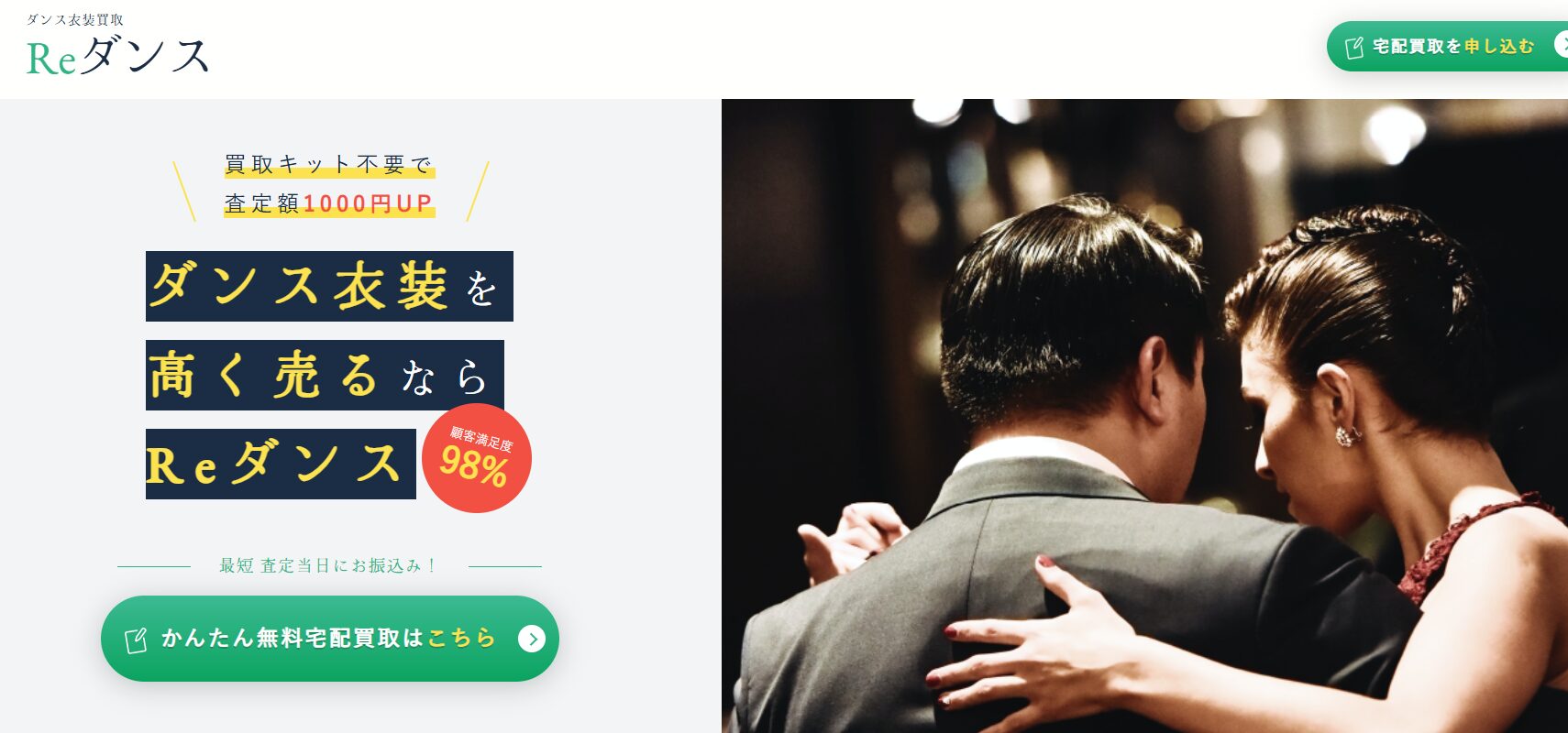 ダンス衣装を高価買取してくれる「Reダンス」。宅配買取で自宅に段ボールが届くだけなので、かんたんに査定を申し込むことができます。自宅にダンス衣装が眠っている方にはおすすめのサービスです。