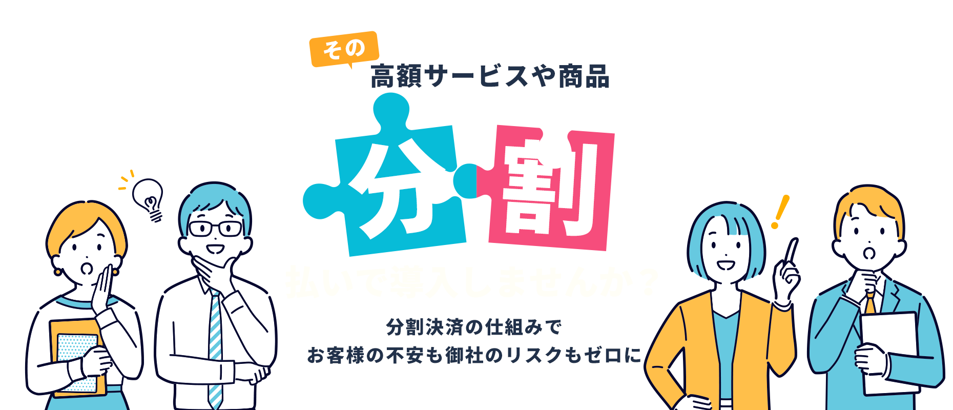 まかせて信販」は、高額商品・役務販売会社向けに分割決済導入をサポートするサービス。クレジット・ローン会社と提携し、最長96回払い対応、導入から運用まで窓口一本でフォローします。
