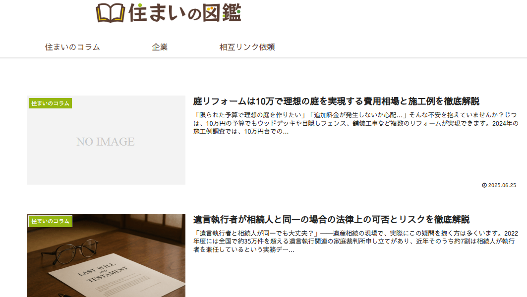 庭のリフォーム費用や遺言書に関する情報、プレハブ住宅のみりょくなど、幅広い暮らしに関する情報を配信されている「住まいの図鑑」でしあわせの遺品整理が掲載されました。