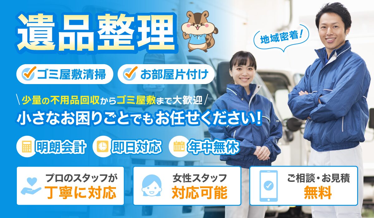 遺品整理、生前整理ならお任せください。
