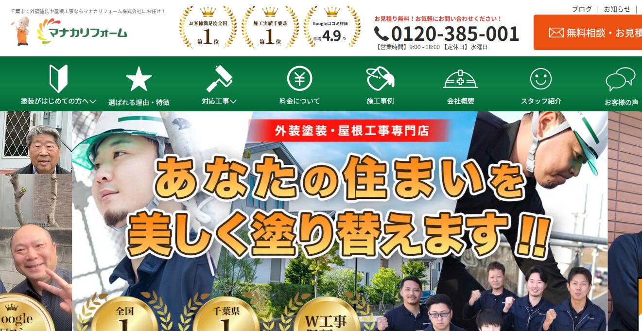 マナカリフォーム株式会社は、「正直・誠実」をモットーに千葉県を中心に外壁・屋根塗装を行っている会社です。